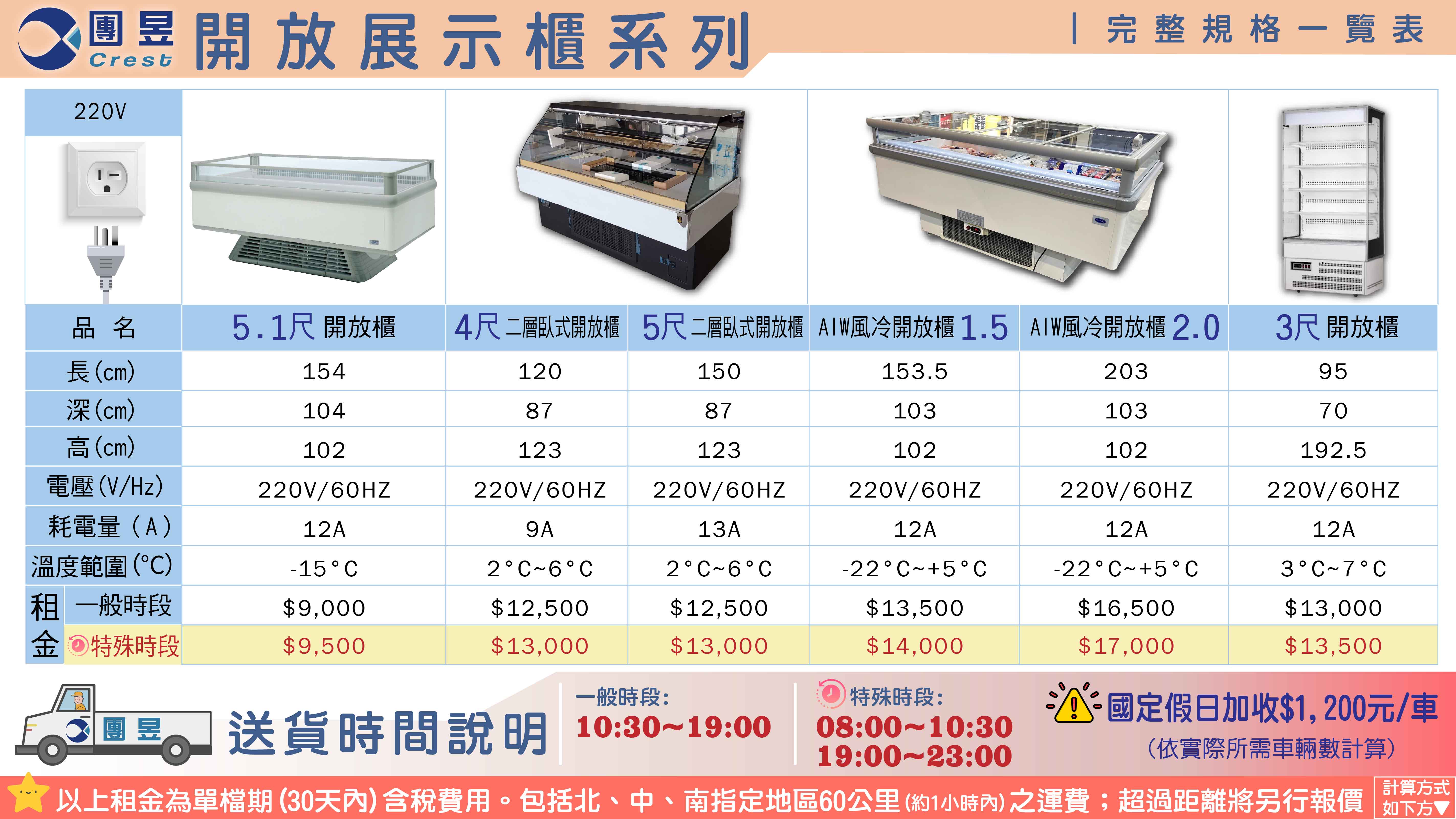 ANS: 一個檔期30天內、同一地點含進場 撤場一次為準(報價含運送費用.內含5%稅金)