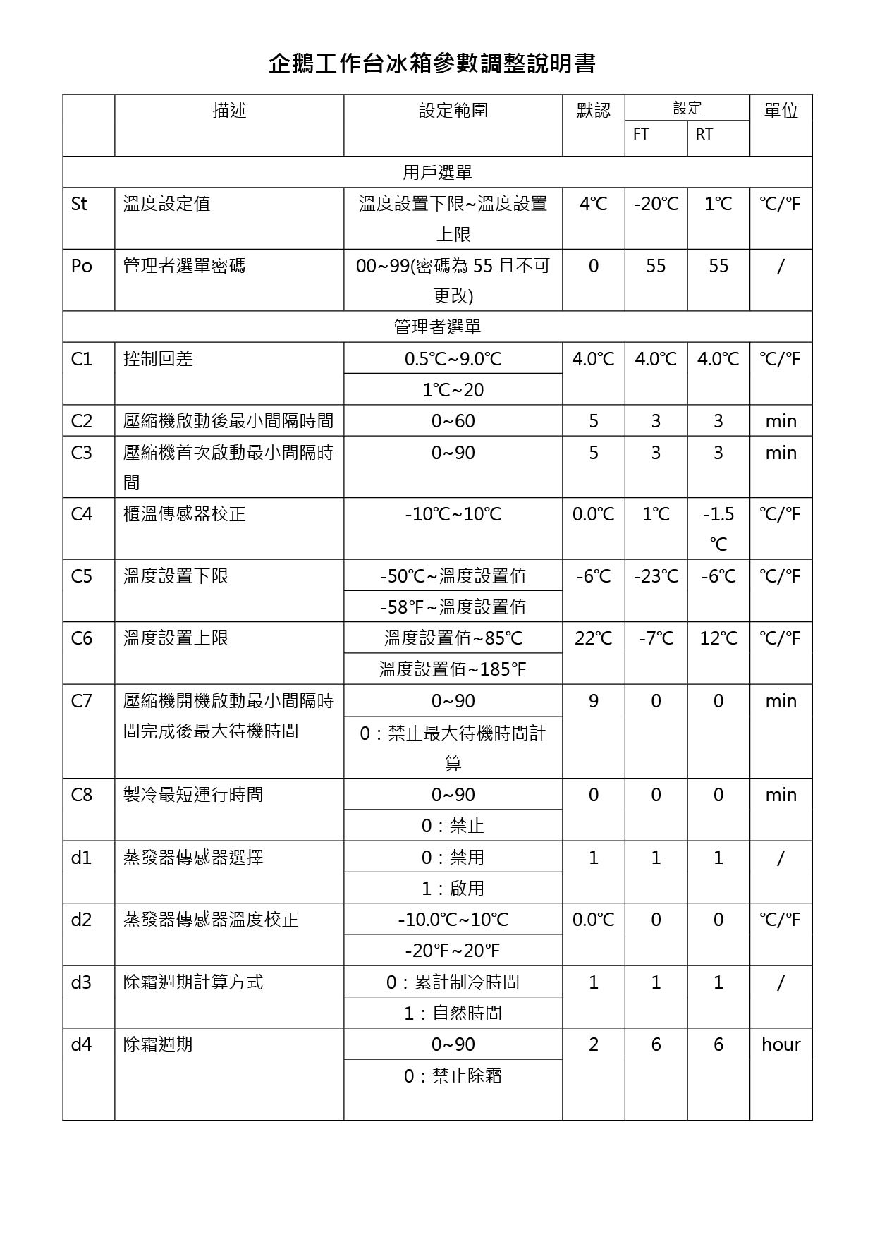 企鵝工作臺冰箱操作說明書