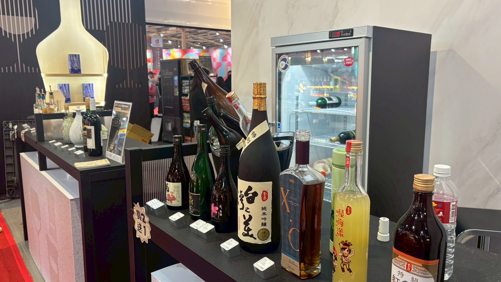 這次展覽團昱合作廠商較多元,從酒商、咖啡業者到烘焙甜點品牌都有,其中又以酒商為最大宗,而團昱租賃出去的冰箱以直立展示冰箱、玻璃對拉冰櫃為主。