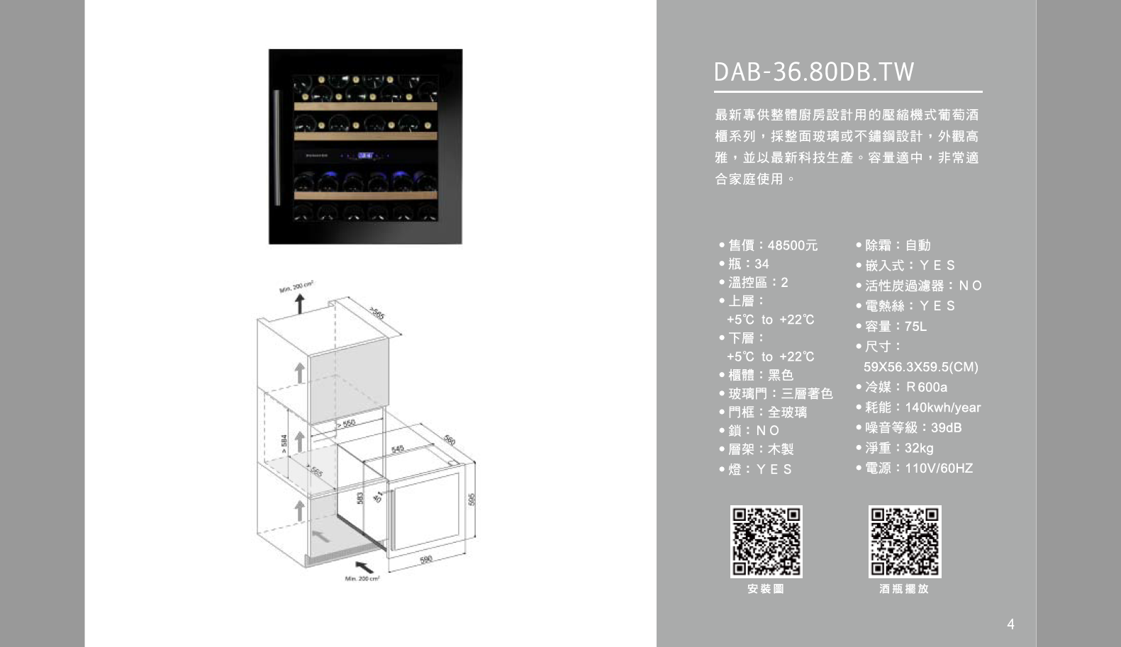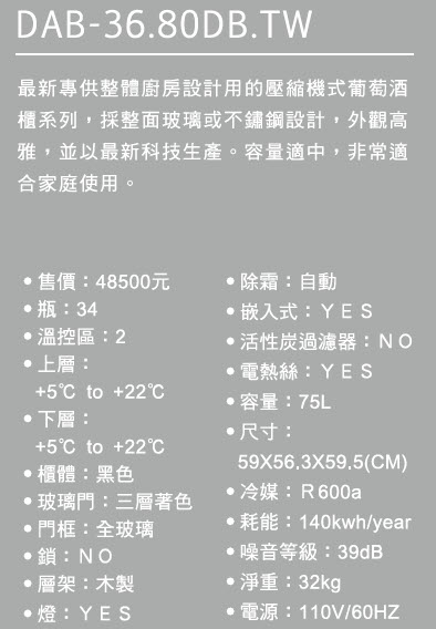 匈牙利多瑙明珠崁入式紅酒櫃-34瓶-DAB-36