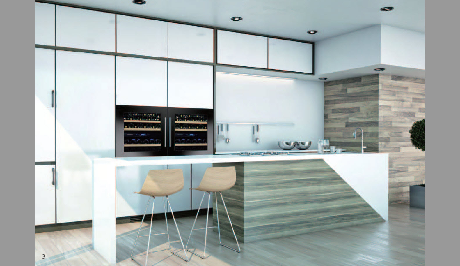 最新專供整體廚房設計用的壓縮機式葡萄酒櫃系列,採整面玻璃或不鏽鋼設計,