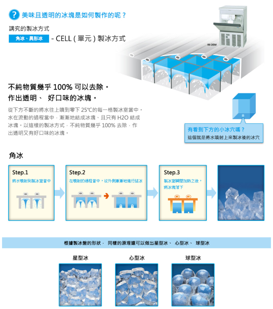 - 獨特的製冰方式使冰塊純淨透明