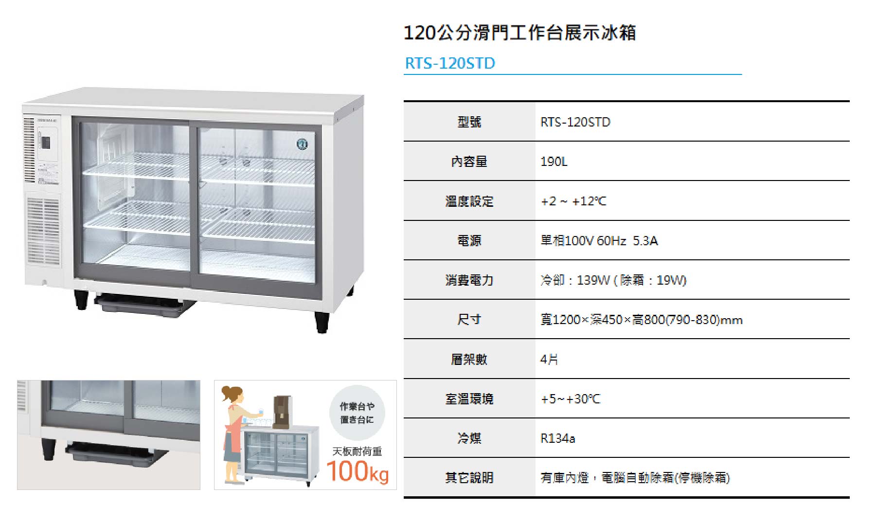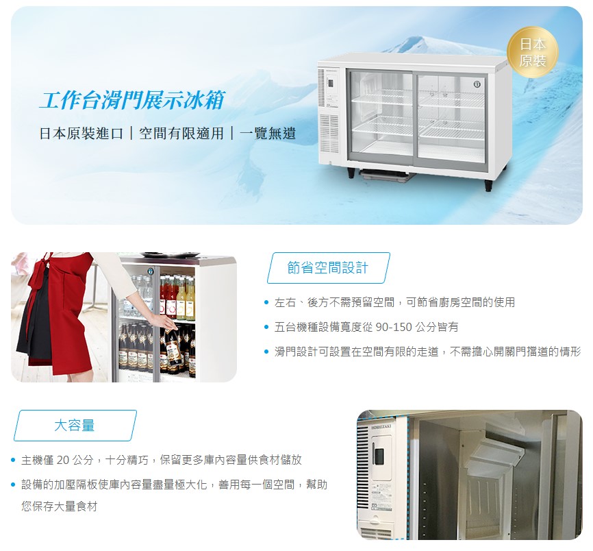 HOSHIZAK玻璃滑門展示工作台冰箱90公分/100公分/120公分