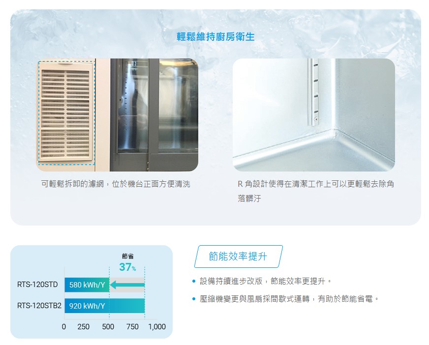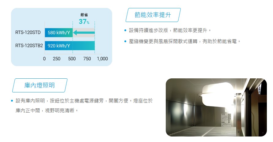 • 壓縮機變更與風扇採間歇式運轉,節能效率提升