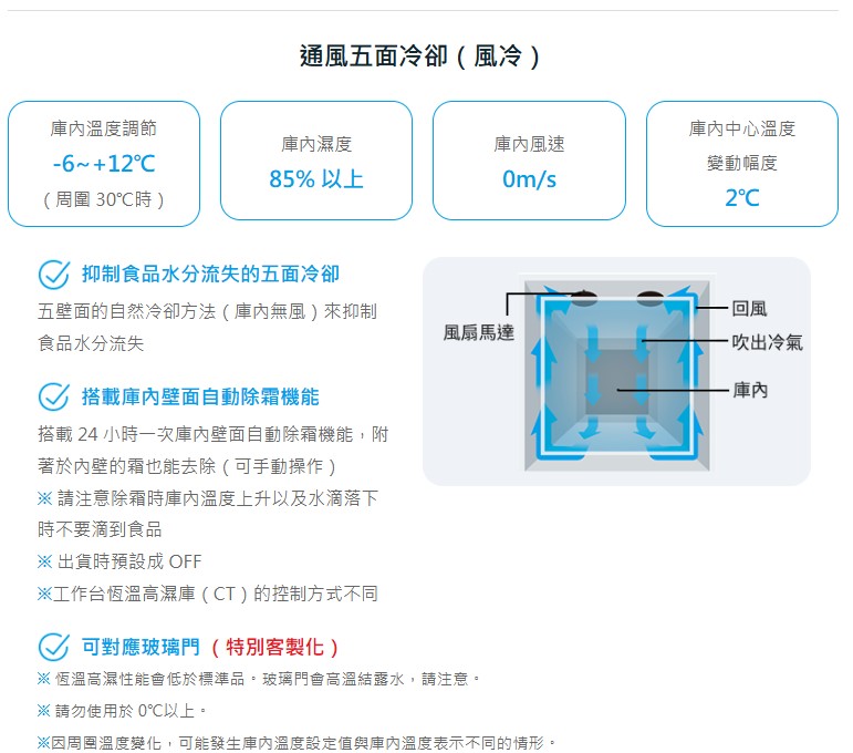 五壁面的自然冷卻方法(庫內無風)來抑制食品水分流失