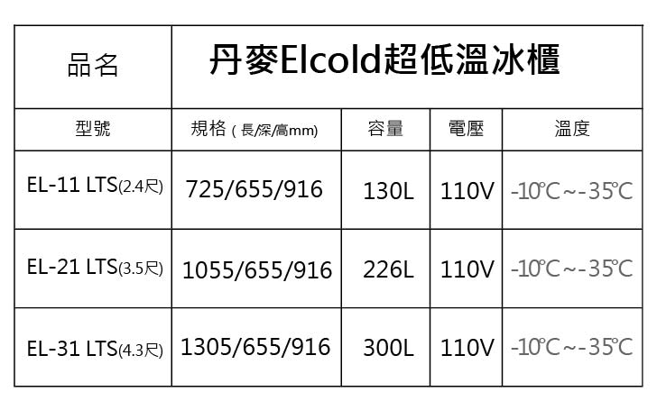 丹麥Elcod超低溫對拉冰櫃2.4尺/3.5尺/4.3尺