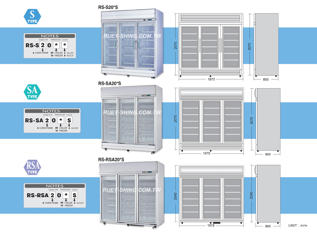 - 冷凍機型玻璃門,採用三層玻璃設計,保溫效果佳,自動除霜功能不起霧、不積水,呈現最佳商品展示效果