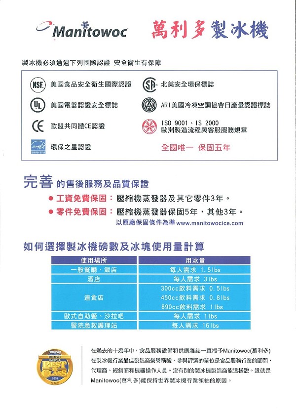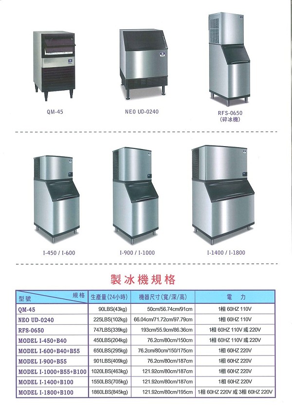 液晶中文顯示製冰機 尺寸:長/深/高(762/862/1890mm) 日產量:906lb/410kg/24時 機器維修保固3年 壓縮機零件保固5年 全冰/半冰 水冷/氣冷外移